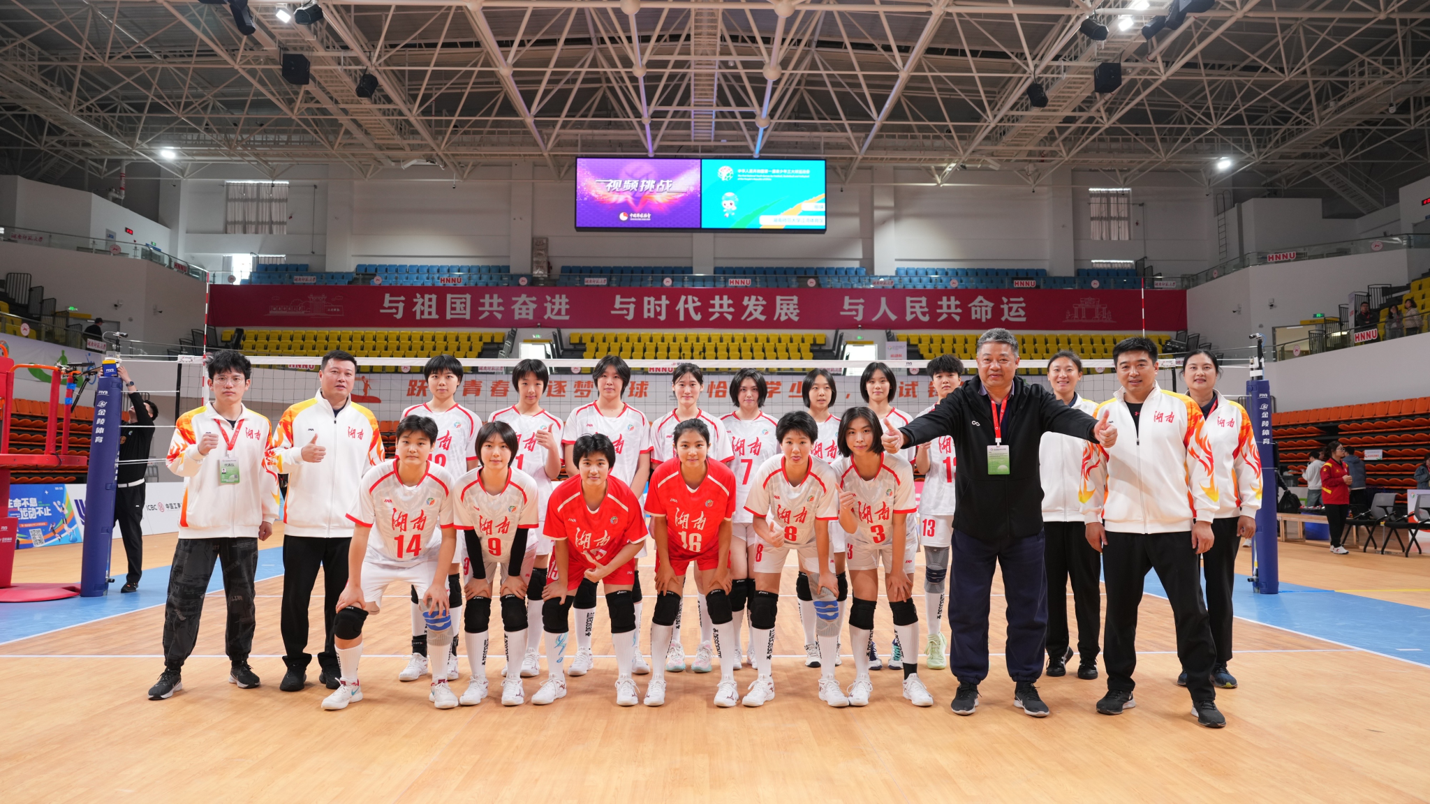 湖南青年女子排球队由新葡的京集团女排队员曹可馨及周南中学等其他中学共计14名队员组成。经过鏖战,女排队获得第15名。