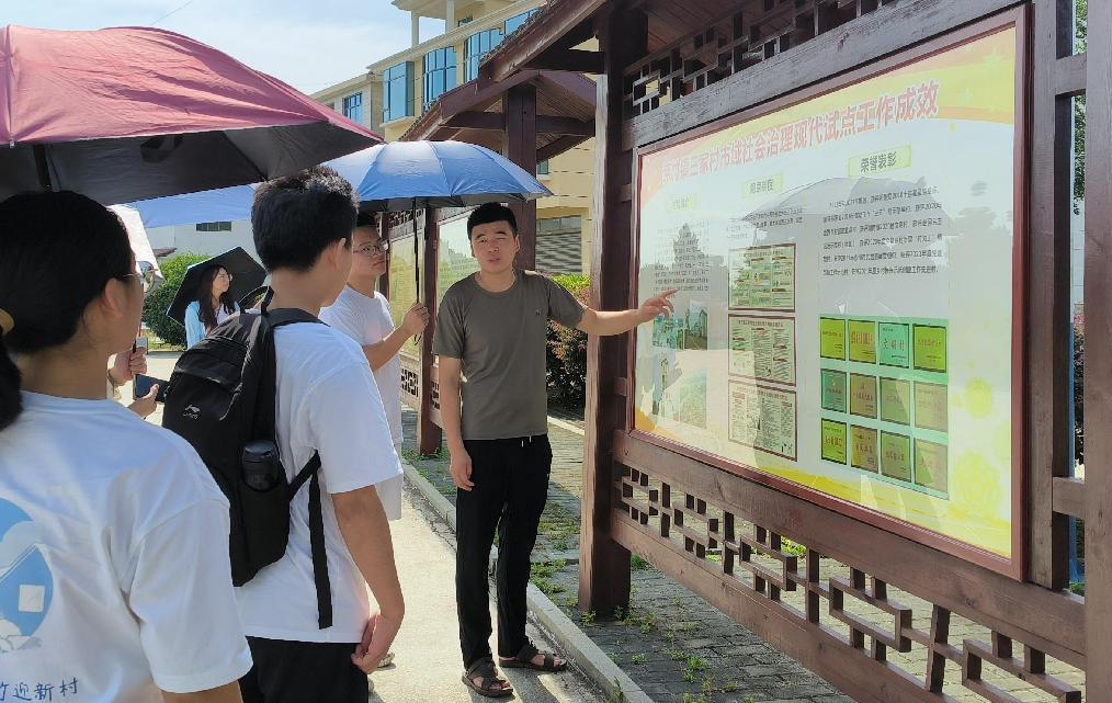 三家村党支部干事尹文伟为实践团详细介绍了三家村的基本情况,包括管理、考核制度以及乡村振兴产业等。实践团了解到,三家村在乡村振兴示范中一马当先,在茅竹镇"三创三强"评比中脱颖而出,跻身十个红旗村之一。三家村通过制定村规民约,推进村民法制建设,提升村民文明素养,并进行村民小组组长工作考核以及补助,建立完善的党员积分管理考核机制,通过积分兑奖品的活动增强村内居民的参与感和幸福感。
