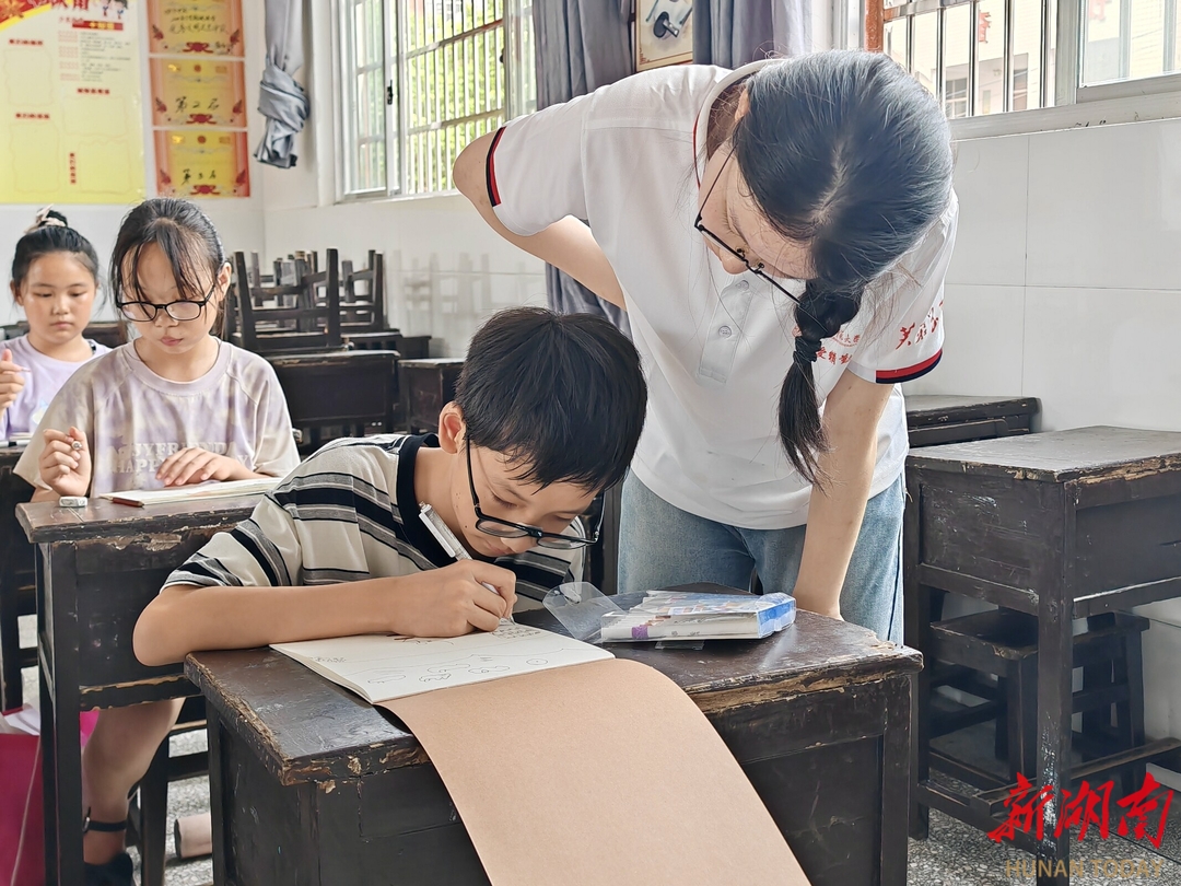 鉴于小学生正处于创造力蓬勃发展的关键时期,实践团成员充分发挥自身的专业素养和耐心,先是在黑板上进行了详细的示范,为孩子们打开了想象的大门。而后,在孩子们自由创作的过程中,实践团成员始终陪伴左右,适时给予他们有关图像的构图、色彩搭配等方面的宝贵建议。他们以敏锐的洞察力和亲切的指导,帮助孩子们克服创作过程中遇到的困难,激发他们的无限创造力。