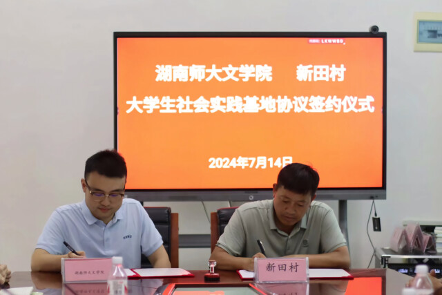 在新田村,社会实践团以思想引领、文明生活、身心健康、快乐学习、文化传承、产业发展为主要内容,积极开展志愿服务和社会实践活动。7月14日,湖师大文学院与新田村举行社会实践基地签约仪式,“田小二说新田”直播间同步正式揭牌。此次签约,标志着双方合作进一步加深,该校增添了新的社会实践平台,也将为新田村的发展注入更多青春力量。