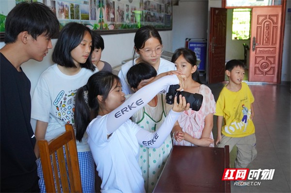 活动中相机不仅仅是记录的工具,更成为了连接孩子们与家乡情感的纽带。实践团以相机为载体,在教学中融入乡土元素,将课堂延伸向田间,培养孩子们的乡土情怀,增进孩子们对家乡的情感。实践团成员引导孩子们用心发现美、探究美、表达美,鼓励他们用镜头讲述乡村故事,让摄影成为一种寻根乡土记忆、传承乡村文化的方式,激发他们对数字技术的兴趣和热爱。