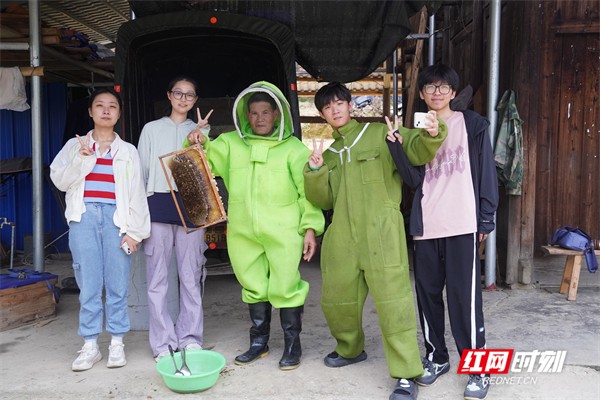 实践团成员集思广益,创新传播思路,利用新媒体视听技术勾勒声画融合的乡村画卷,并投入到农产品生产销售的实践中。为当地养蜂户苏维和提供短视频拍摄的指导,打开特色土蜂蜜的网络销路与知名度,积极探寻农村经济产业发展的新前景。